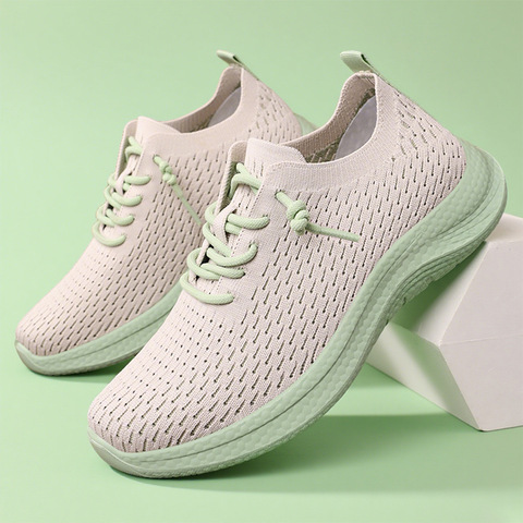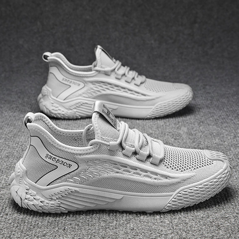 2025 zapatos deportivos informales de verano para hombres con diseño de malla de punto con mosca Cierre de cordones transpirable para correr caminar tendencia de moda