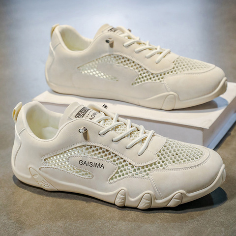 Novedad de verano 2025, zapatillas de deporte informales transpirables de malla para hombre, zapatillas ligeras de estilo coreano con suela blanda para correr, con cordones, otoño