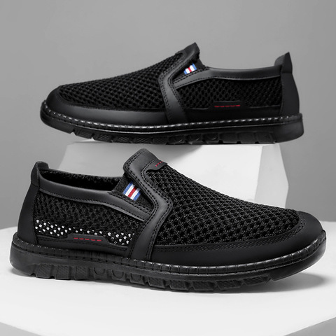 Scarpe sportive estive Casual da uomo con Design traspirante in Mesh senza spalline superiore con motivo solido Slip-On alla moda da passeggio